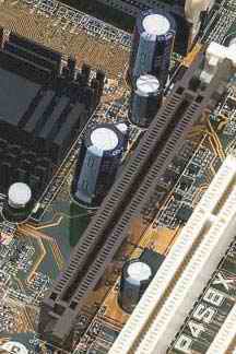 华硕P4T533主板CPU插槽附近以及CPU与北桥之间共计采用了七颗钽电容,该款主板其它部分也采用了钽电容。华硕P4T533主板不仅支持533MHz系统前端总线,更是支持32-bit RIMM4200 RAMBUS内存,因此对高频的支持能力无疑会使它成为高端主板的新典范。
